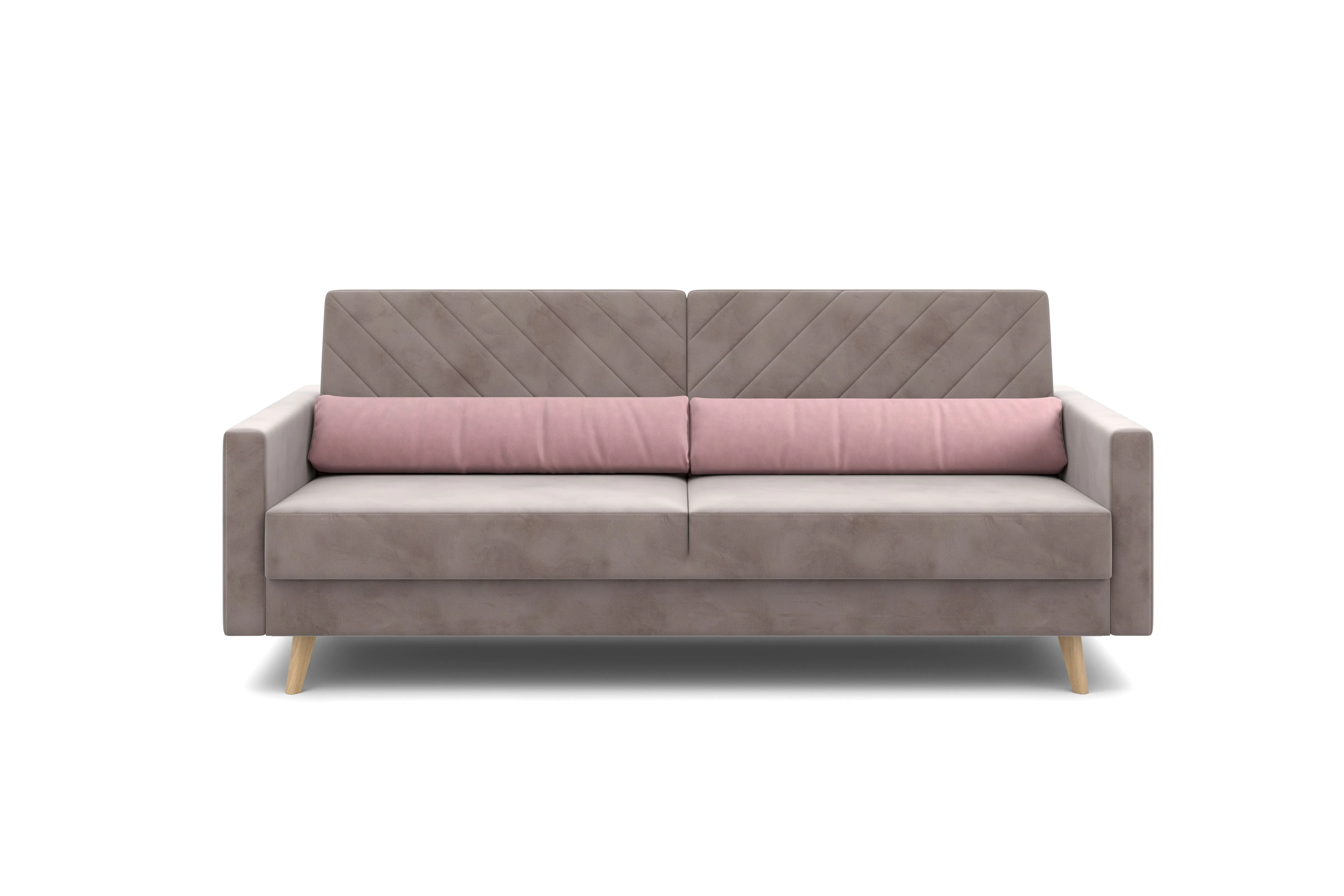 Обивка из велюра не только роскошно выглядит, но еще и практична в эксплуатации, а также имеет отличные показатели износоустойчивости.Высокие опоры из массива березы придают дивану визуальную лёгкость, декоративная отстрочка на подушках и боковинах придают приятный объем. Подушки из велюра контрастного цвета входят в комплект.