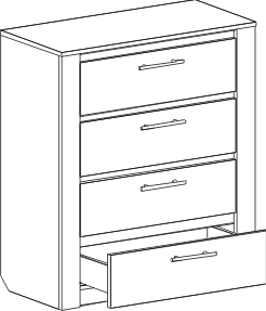 Комод оснащен четырьмя выдвижными ящиками на роликовых направляющих. Под столешницей имеется стеклянная панель (5 мм), предназначенная для установки светильника. Комплект подсветки (светильник и блок питания) приобретается отдельно. Блок питания рассчитан на подключение шести светильников.