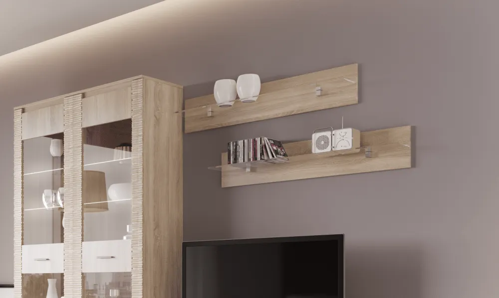 Полка "Элана" — эталон по всем параметрам. Модель имеет оптимальный цвет для комбинирования с другими оттенками и создания оригинальной общей концепции, а размер позволяет рационально использовать полезную площадь.