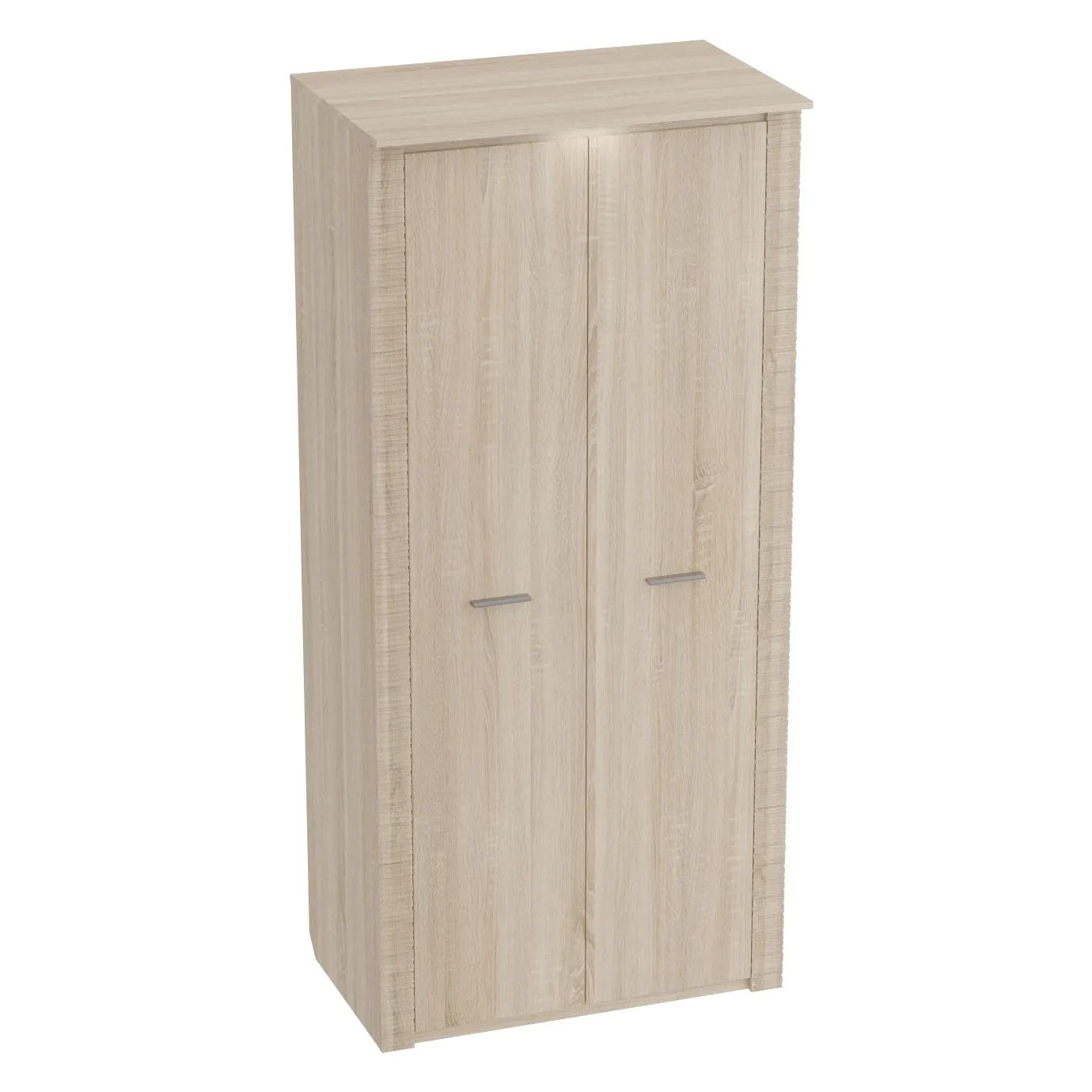 Двухдверный шкаф оснащен двумя отделениями: для белья с четырьмя съёмными и центральной жёсткой полкой; платяное с жесткой полкой и продольной стальной штангой. В колпаке шкафа имеется паз для светильника, входящего в комплект. Блок питания приобретается отдельно, и рассчитан на подключение шести светильников.