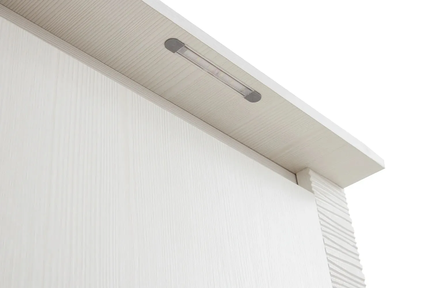 Серия мебели для спальни с нежным названием "Элана" такая же мягкая и романтичная. В ней воплощены самые актуальные тенденции мебельной индустрии, основой которых сегодня является акцент на мягкие, природные, естественные линии. Все это отражается в деталях коллекции: фрезерованные планки, подсветка, мягкие элементы кровати, - делают эту спальню изысканной и необыкновенной.
