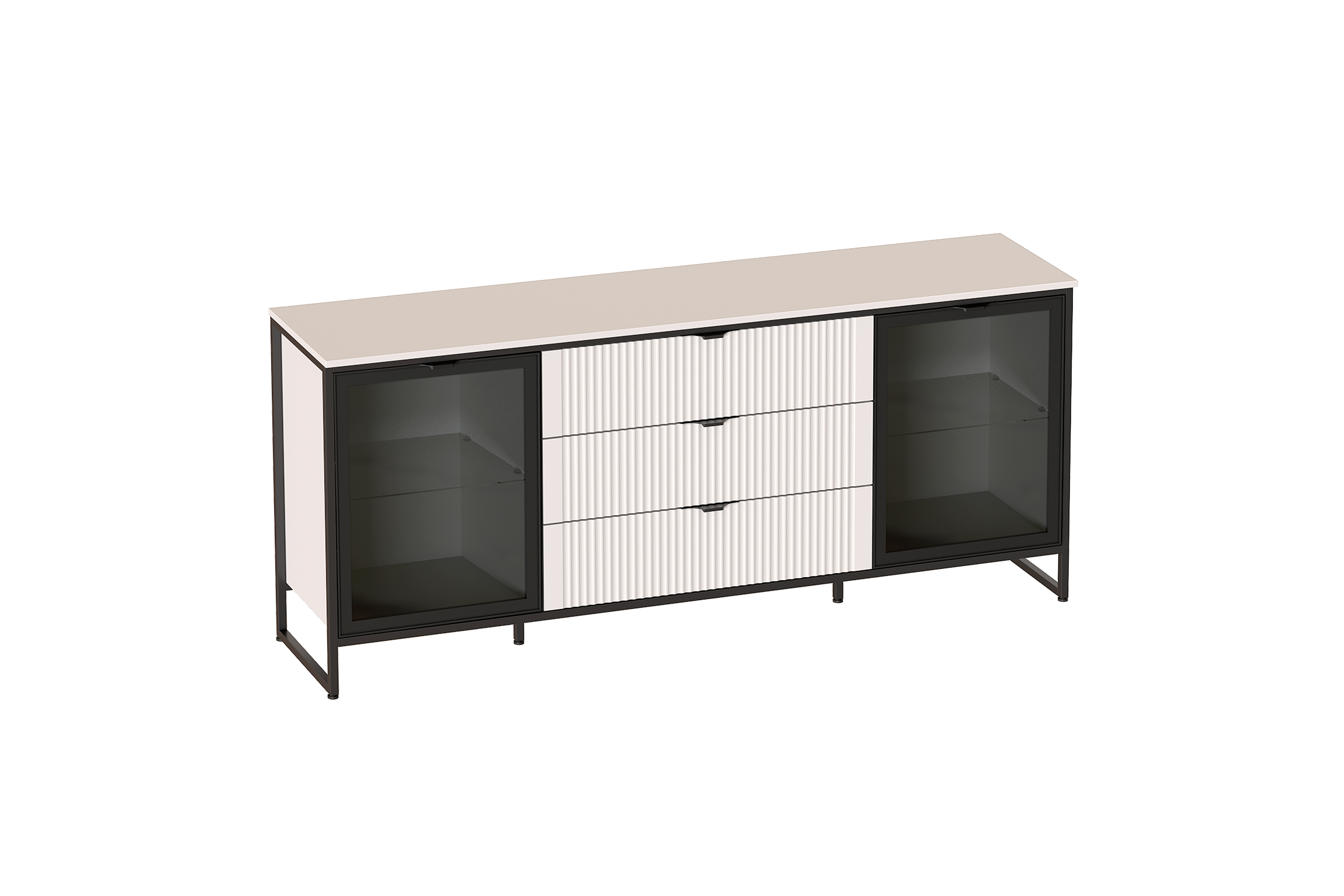 Коллекцию модульной гостиной "Нора" отличает современный оригинальный стиль. Декоративная продольная фрезеровка на фасадах из МДФ и опоры на металлокаркасе цвета соответствуют модным тенденциям этого года в ведущих зарубежных коллекциях.